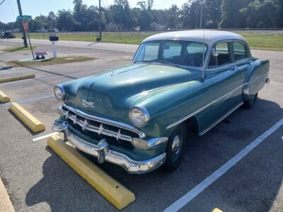 1954 Chevrolet Classic Sedan, 4 dr., auto trans. All original, needs a good cleaning, no rust, paint about 5 yrs old, it starts and runs likea70 year 70-year-old car. Can be seen in Long Beach, asking $11,000, will consider trades, Call Don 564-212-0905 MS Gulf Coast